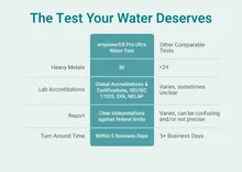 Collect your sample, ship it with prepaid postage, and get fast, verified results within days. Our detailed digital report interprets your results against federal guidelines, so you know exactly where your water stands. Every test is conducted in our U.S.-based lab, certified by the EPA and NELAP, ISO/IEC 17025 accredited, with over 30 years of water testing experience and more than one million tests performed—water testing you can trust.